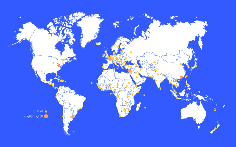 يعمل في شبكة مكاتبنا الموزعة على خمس مناطق جغرافية كبرى 2600 شخص من 100 جنسية مختلفة في 150 دولة وأكثر من 260 مدينة.