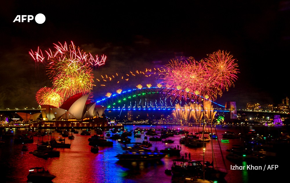 Fireworks explode over the Sydney Harbour Bridge and Sydney Opera House during New Year's Eve celebrations in Sydney on January 1, 2024.