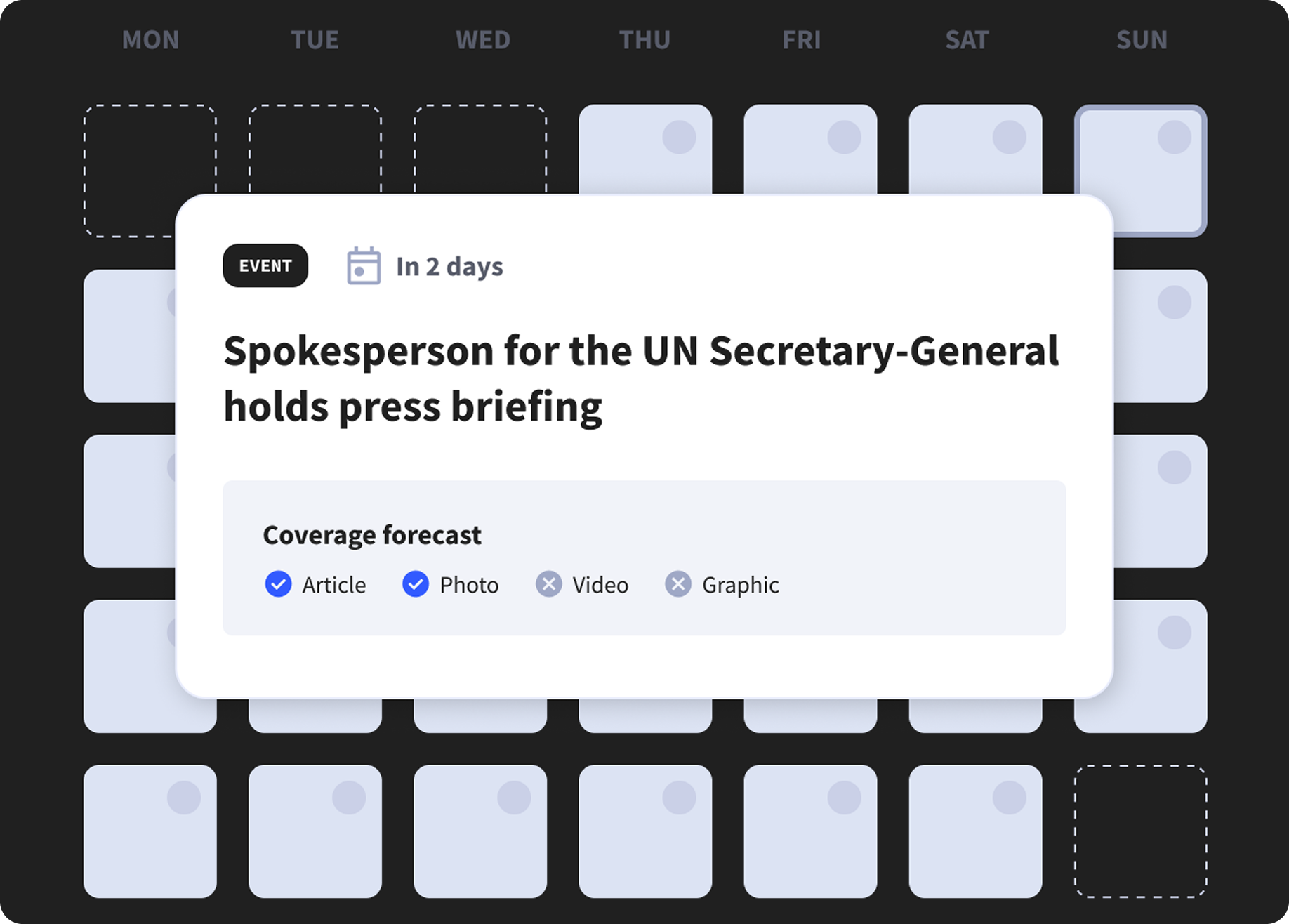 Upcoming events and AFP coverage details