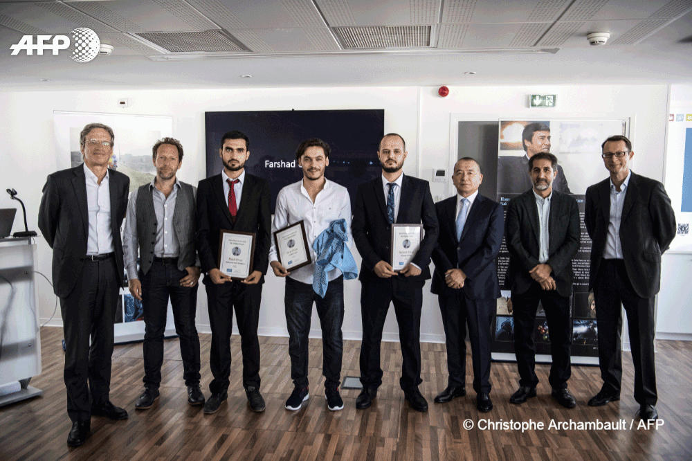 Tres fotógrafos afganos ganadores del concurso Shah Marai de la AFP reciben premio en París