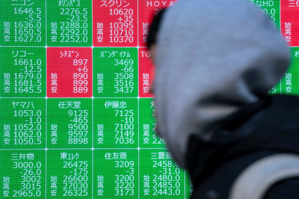 Une personne passe devant le tableau où apparaît la valorisation boursière de Nintendo, le 17 janvier à Tokyo. © Kazuhiro Nogi / AFP