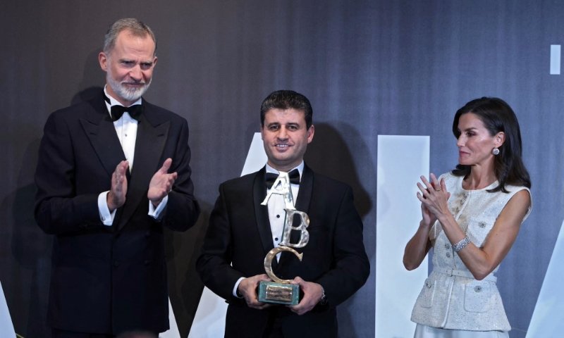 Le photographe AFP Said Khatib reçoit le prix Mingote en Espagne.